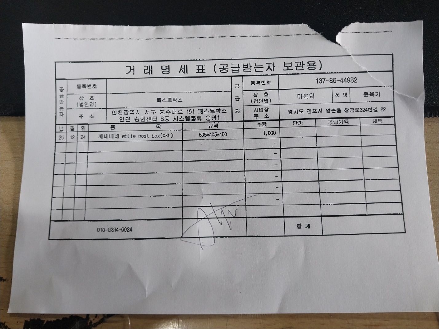 #1. 베네베네_white post box(XXL) / 수량 : 1,000 / 규격 : 605*405*400
