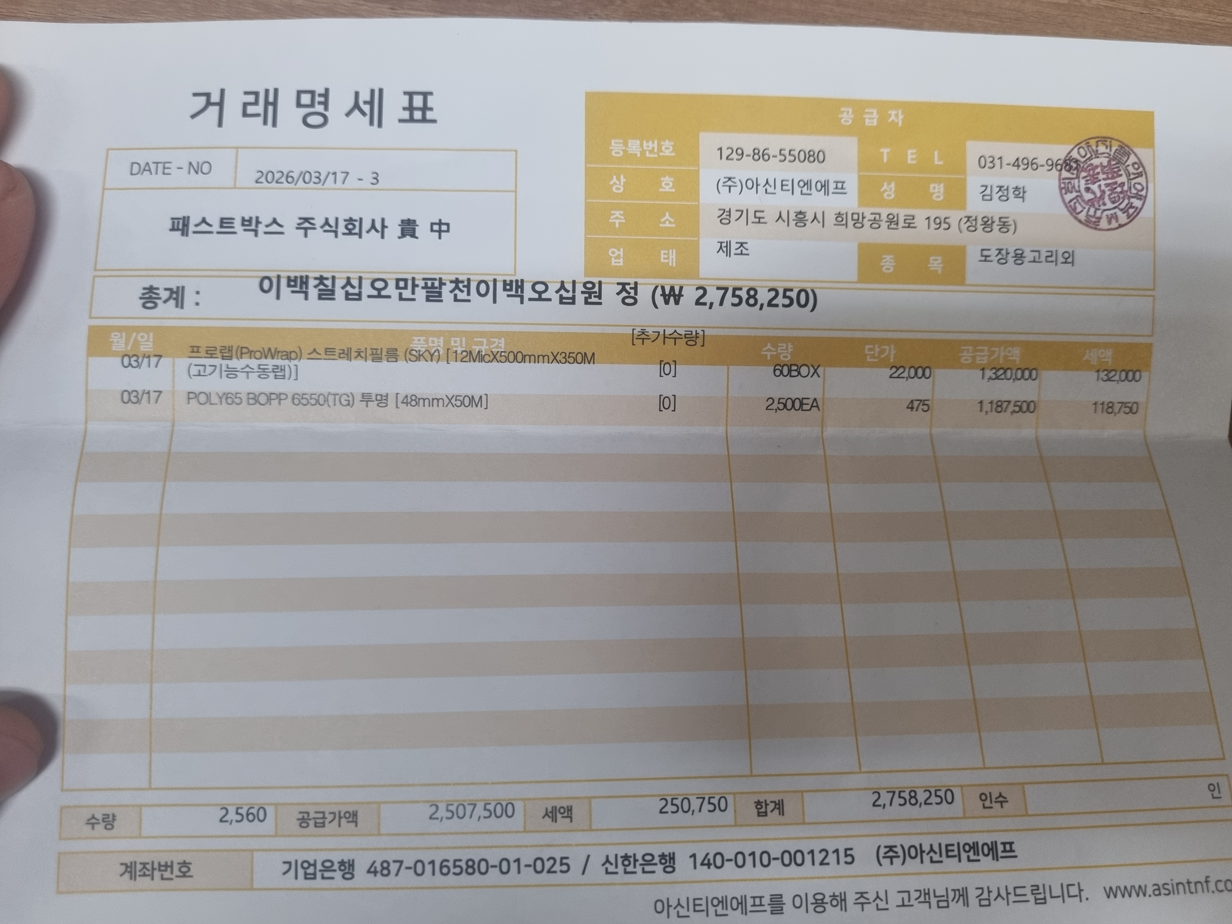 #3. 스트레치 필름-기능성(12mic) / 수량 : 60 / 규격 : 12mic*500mm*350M