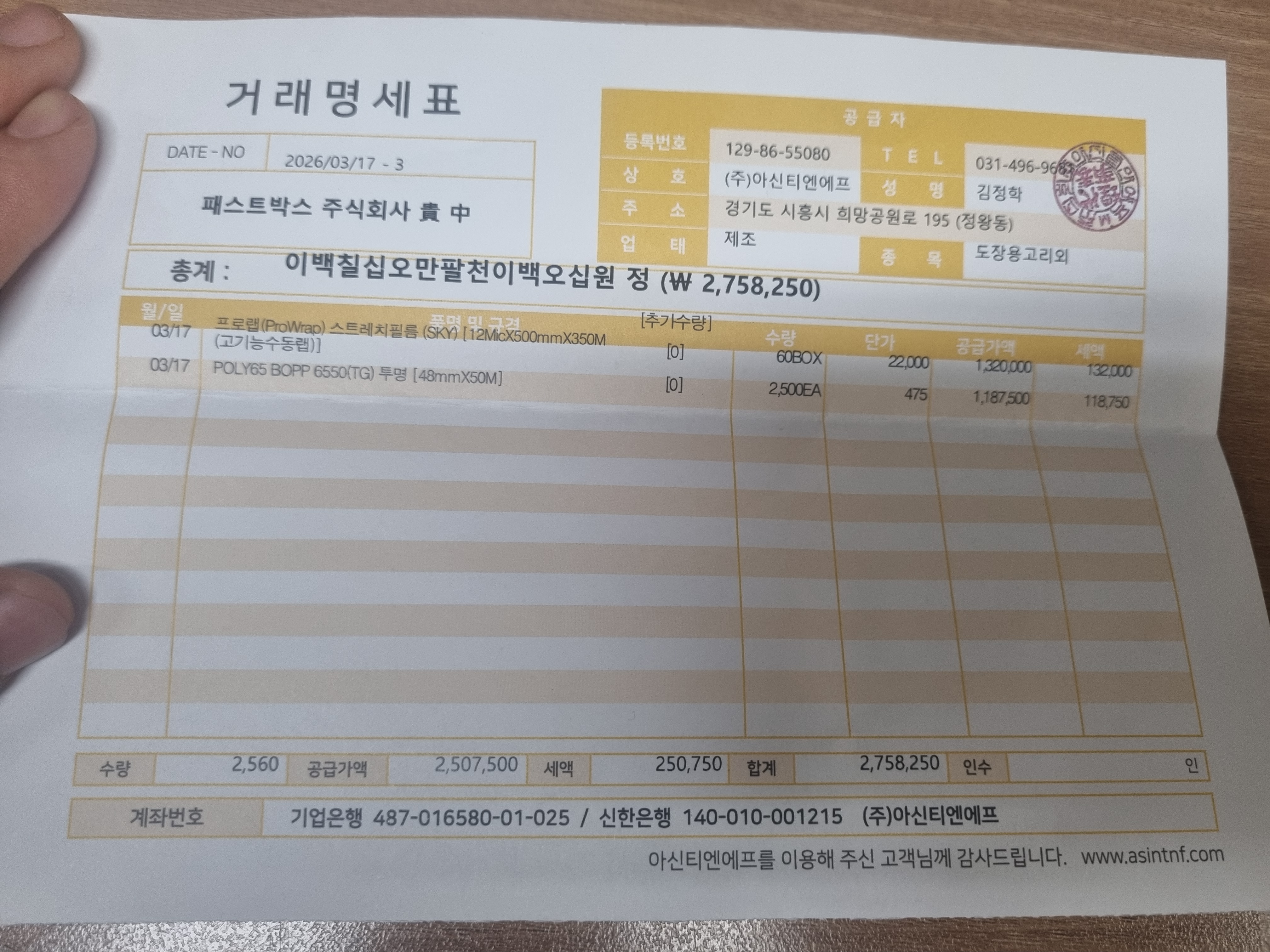 #1. OPP테이프(중포장) / 수량 : 50 / 규격 : 48mm*50M