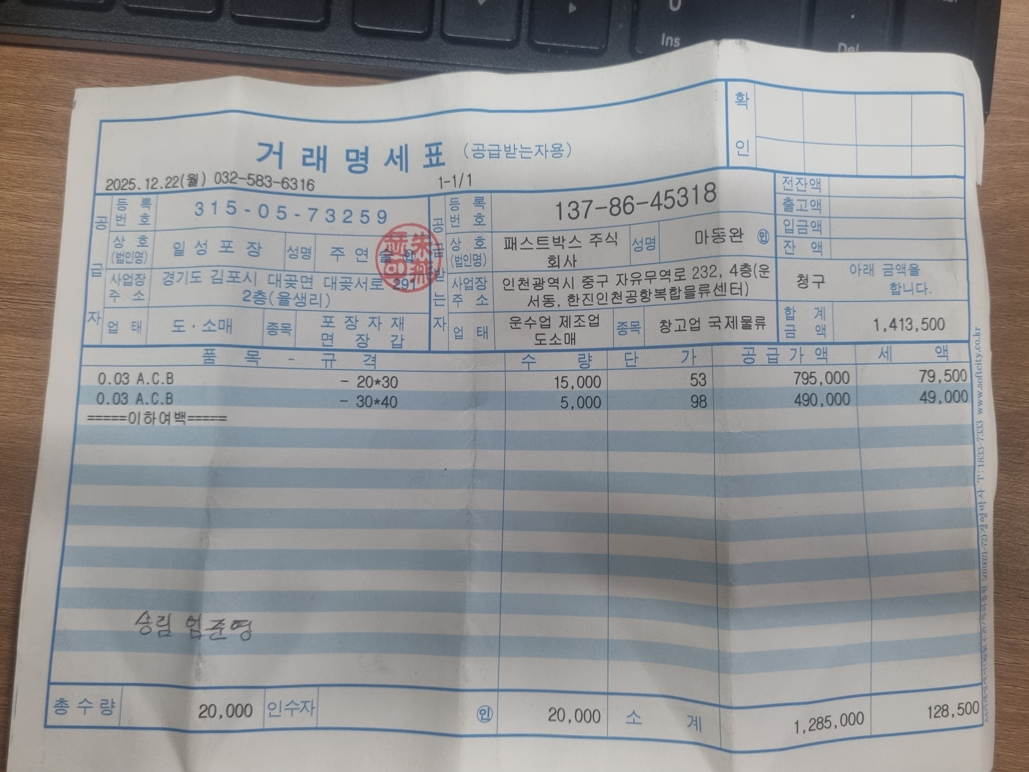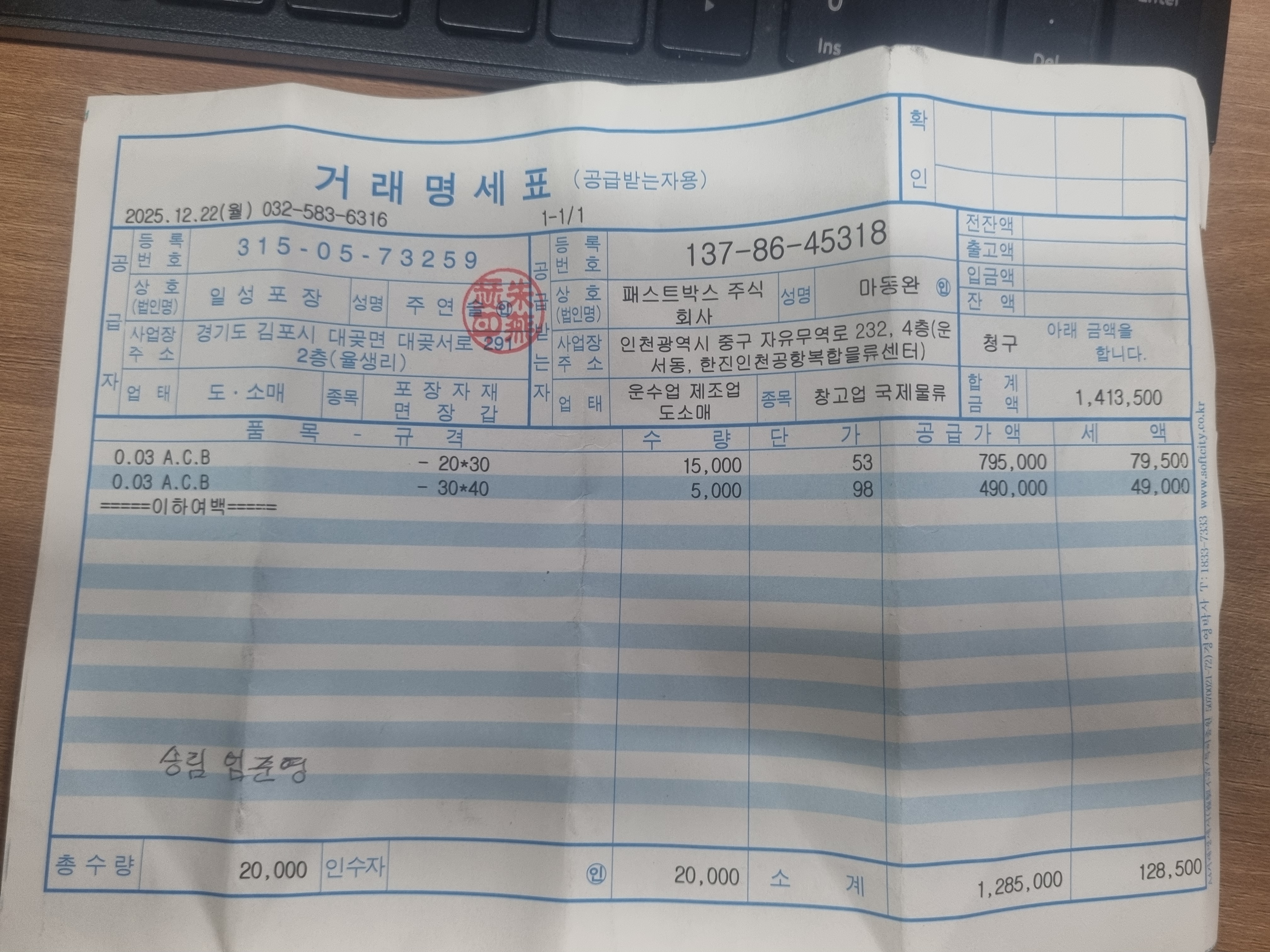 #3. 에어봉투3/20/30 / 수량 : 15,000 / 규격 : 0.03*20*30